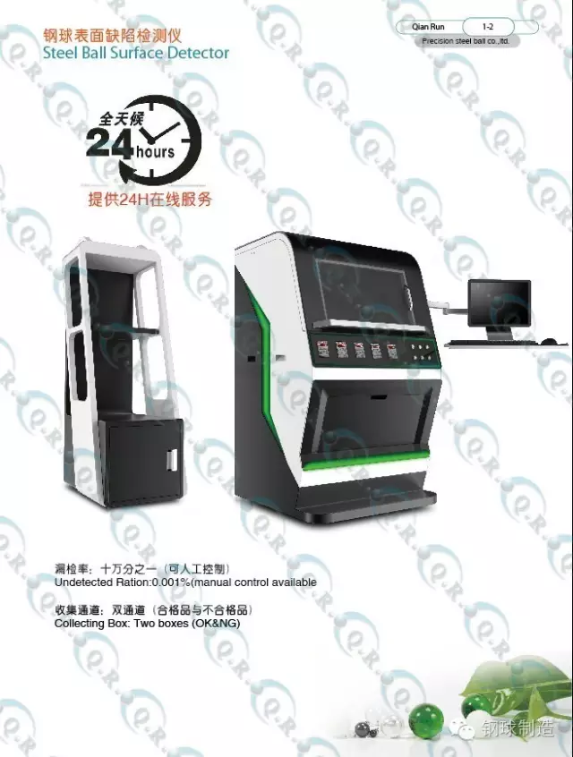 中山乾润是一家专业生产微小型高精密钢球的厂家,在实际生产中发现了现有的钢球分选检测设备并不能满足实际需求,所以自2009年开始,对精密钢球的表面检测技术反复深入探讨,研发了QR系列的钢球光电检测设备。